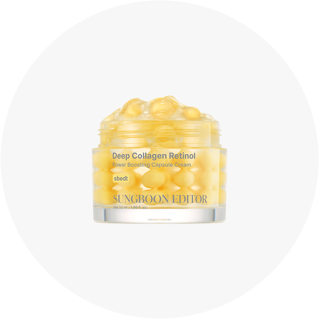 Sungboon Editor Deep Collagen Retinol Power Boosting Capsule Cream – інноваційний щоденний крем проти старіння шкіри, який поєднує капсули колагену та ретинолу зі зволожуючою гелевою основою для більш гладкої, пружної та сяючої шкіри.